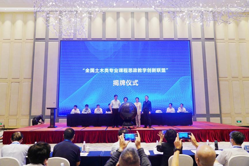 为深入贯彻《高等学校课程思政建设指导纲要》(教高〔2020〕3号)和中共中央、国务院办公厅《关于深化新时代学校思想政治理论课改革创新的若干意见》等文件精神,贯彻落实习近平总书记对大学生思想政治工作的指示精神,更好地服务学校思政教育和课程思政,选优树优,推广思政教学先进经验,6月17-19日,由我校牵头发起的“全国土木类专业课程思政教学创新联盟”在江苏徐州正式成立。 教育部学校规划建设发展中心项目办主任马卉子、人民日报·人民数据研究院院长周中华、我校党委书记孙进教授、院长沈士德教授、黄河水利职业技术学院党委书记周保平、四川建筑职业学院院长胡兴福、湖北城市职业技术学院院长危道军、河南建筑职业技术学院校长张新州、淄博建筑职业学校校长任曰金、领航未来(北京)科技有限公司总裁姜涛、中领互联(北京)教育科技有限公司总裁高清禄及来自全国260多所院校的专家学者参加了此次会议。 6月18日上午,“全国土木类专业课程思政教学创新联盟”成立大会成功召开。大会由沈士德主持,孙进致开幕辞。在致辞中,孙进提出了今后联盟发展的总体要求:全面推进院校课程思政建设,是落实立德树人根本任务的必然要求;要始终把思想政治教育贯穿于人才培养体系,全面推进院校课程思政建设,积极探索专业课程融入思政要素的有效途径,切实提高院校人才培养素质。 马卉子、周中华相继致辞。曾凡远对联盟筹备情况进行说明,各参会单位成员就联盟章程、机构设置及人员组成进行了表决。大会一致通过我校为全国土木类专业课程思政教学创新联盟理事长单位,曾凡远为秘书长,戚豹等6位同志为副秘书长。 大会为“全国土木类专业课程思政教学创新联盟”揭牌,为国育智慧思政智库专家授牌。同时,与各单位签署国育智慧思政院校平台联建战略协议并为全国土木类专业课程思政教学研究中心揭牌。 在18日-19日的主旨报告环节中,先后有14位来自各行业企业和院校专家就土木类专业课程思政作经验分享与交流研讨,描绘课程思政体系蓝图。与会代表发言踊跃,会场讨论热烈,为土木类专业人才培养奠定了深厚的基础。 在成立大会前,副院长曾凡远主持筹备会。筹备会上,他介绍了联盟筹备情况说明。各理事会单位建言献策,就联盟的章程、成立过程、下一步工作计划等内容进行了深入交流与讨论。 今后,联盟内各院校和机构、企业将更充分认识新时代院校育人的使命任务,以转变教学理念、提升教学能力、更新教学内容、改进教学方法为着力点,努力推进课程思政改革创新,全面提高人才培养质量,将立德树人根本任务落到实处。